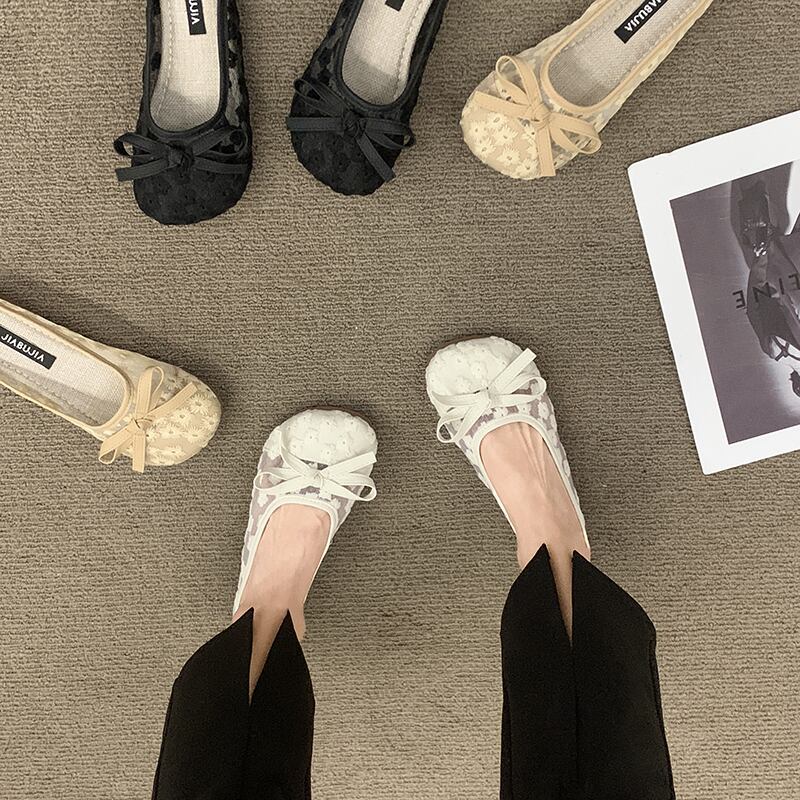 包頭ハーフスリッパレディースサマーアウター2022新作ファッションオールマッチレトロボウ平底滑り止めサンダル リボン ミュール 靴 シューズ 夏物 jxjxf55531708259