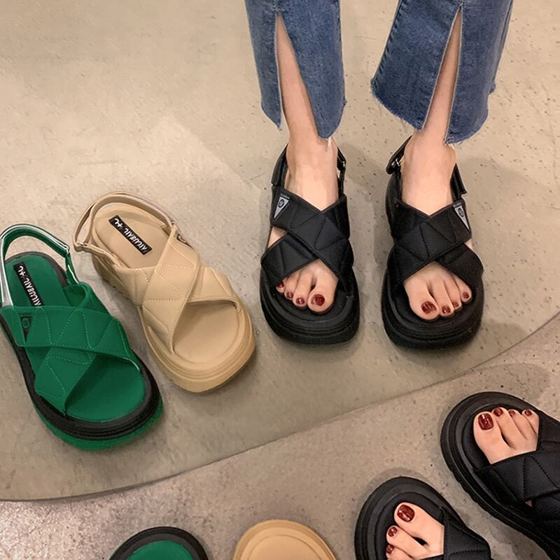 ビーチシューズ女性の夏の海辺の厚い底2022新しいクロスベルクロ滑り止めファッションインタイドカジュアルサンダル 靴 サマー 夏物 jxjxf53366548088