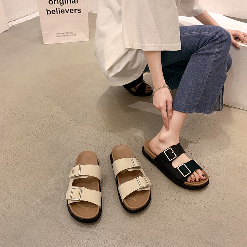 スリッパ女性の潮汐2022年夏の新しいファッションオールマッチレトロベルトバックルフラットボトム滑り止め一言サンダルとスリッパ ミュール 靴 シューズ サマー 夏物 ハーネス スリッポン jxjxf55233898094