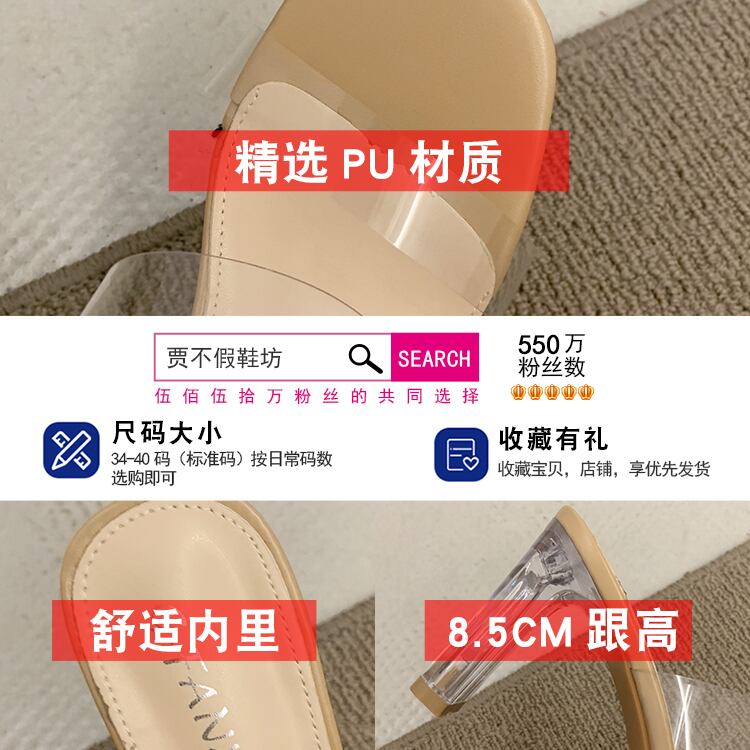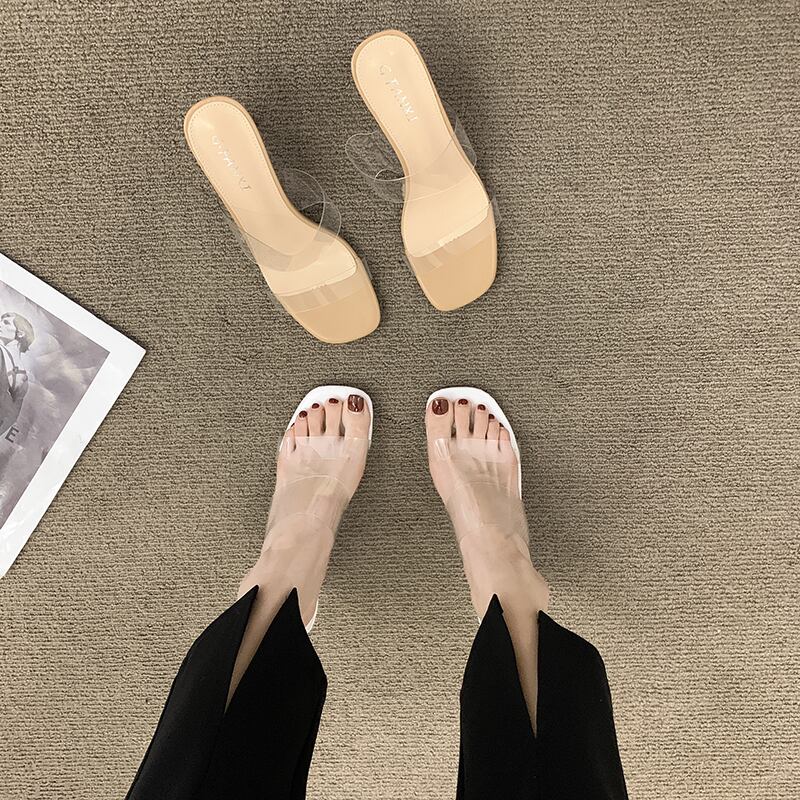 JiaBuフェイクスリッパレディースサマーアウトドアウェア2022年夏新しい透明サンダル夏ハイヒールフェアリースタイルワンワードスリッパ 靴 シューズ ミュール 夏物 jxjxf53677448712