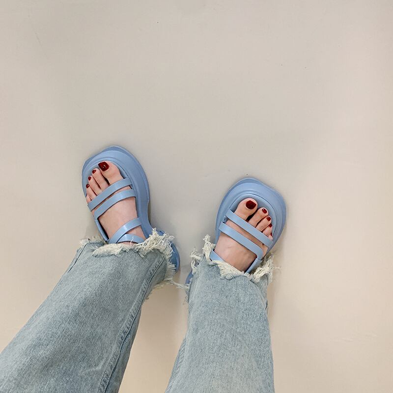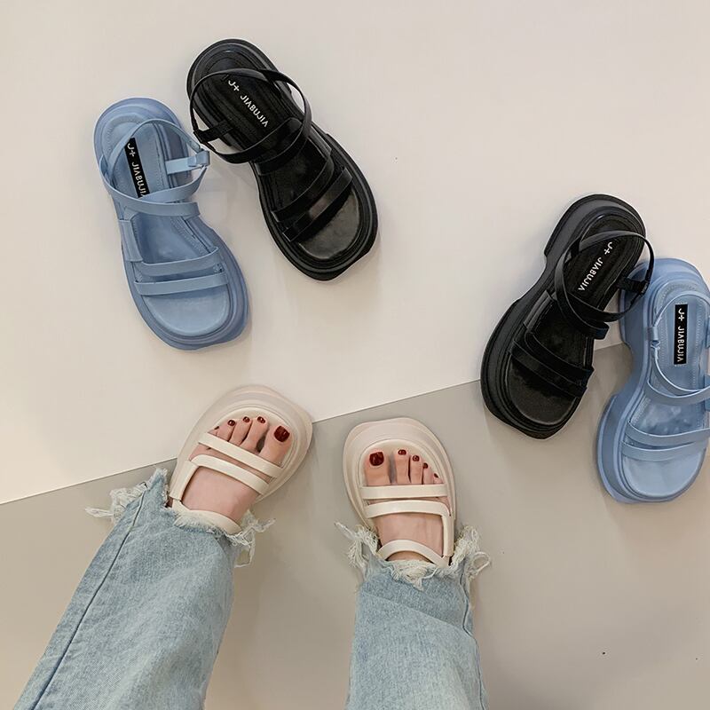 サンダル2022女性の新しい夏の厚いヒール滑り止めネット赤いファッションオールマッチ小さな学生レトロなローマの靴 シューズ レッド サマー 夏物 jxjxf29676018193