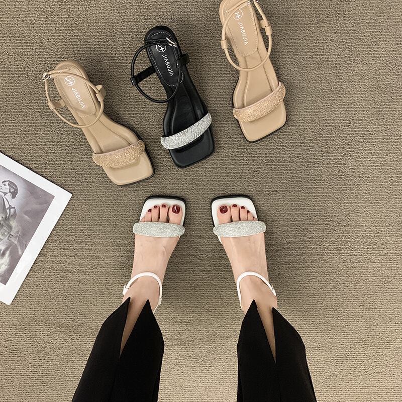一言ベルトサンダルレディース2022夏ニューファッションレトロオールマッチウエスタンスタイルラインストーンスティレットネットレッドハイヒール 靴 シューズ サマー 夏物 ハーネス jxjxf50086926785