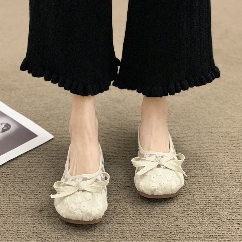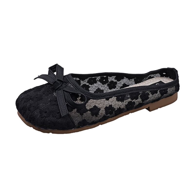 包頭ドラッグアウターウェアレディース2022夏新メッシュボウフラットボトム滑り止めファッションオールマッチ優しいスリッパ リボン ミュール 靴 シューズ サマー 夏物 jxjxf42938203404
