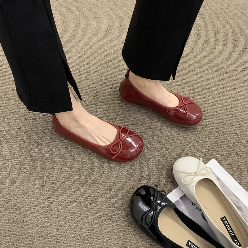 シングルシューズ女性の2022年夏の新しい弓ラウンドヘッド浅い口フラットボトム滑り止めファッションオールマッチレトロビーニーシューズ 靴 リボン サマー 夏物 jxjxf10693275836