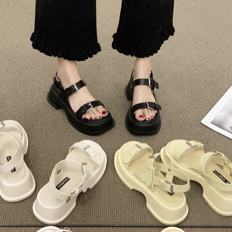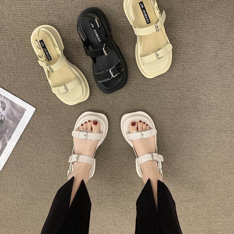 ローマのサンダル女性の2022年夏の新しいベルトバックル厚いヒール滑り止めネット赤いファッション小さなレトロなビーチシューズ 靴 レッド サマー 夏物 ハーネス jxjxf55687567742