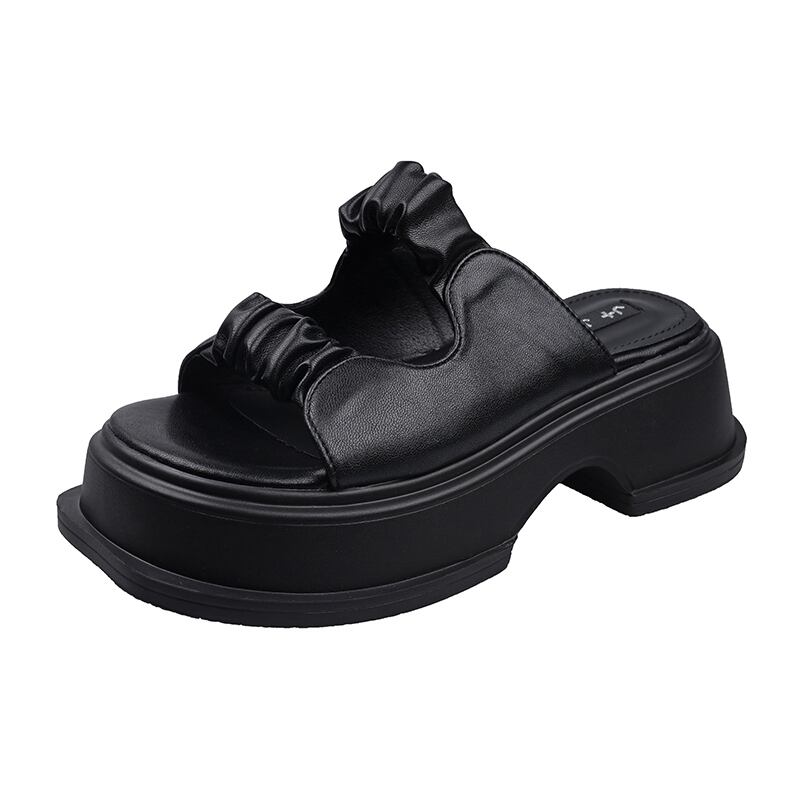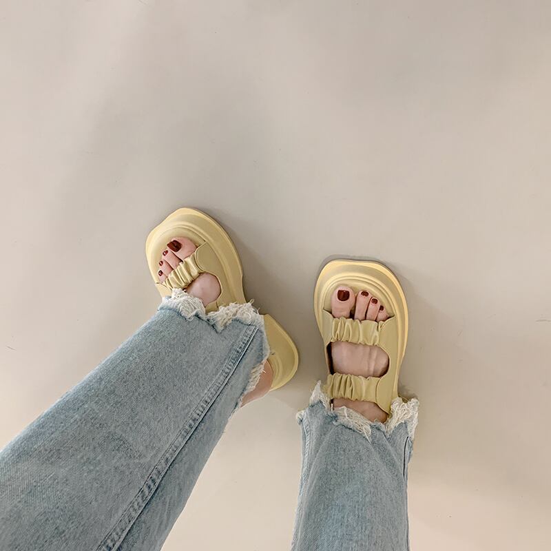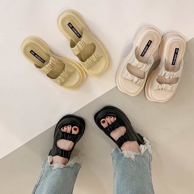 一言スリッパ女性の2022年夏の新しいアウターウェアファッションオールマッチプリーツ厚底滑り止めカジュアルサンダルとスリッパトレンド ミュール 靴 シューズ サマー 夏物 jxjxf24131384954