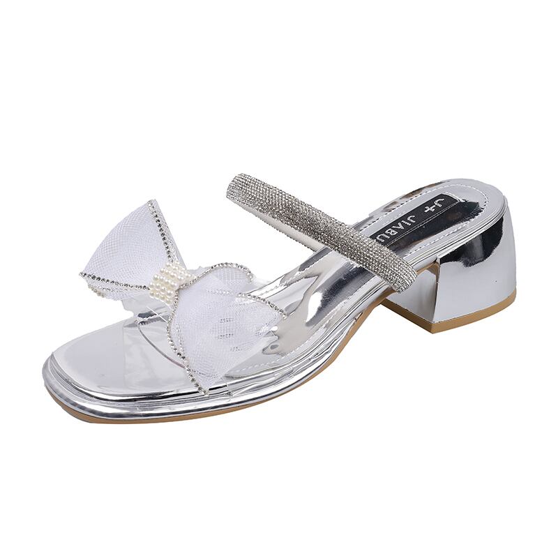 アウターウェアスリッパレディース2022夏ニューネットレッドファッションパールボウ厚手のヒール滑り止め一言サンダルとスリッパ リボン ミュール 靴 シューズ サマー 夏物 スリッポン 真珠 jxjxf97332678540
