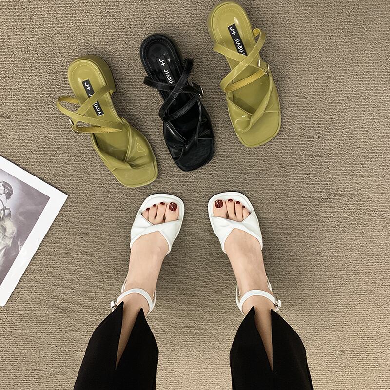 ガールズサンダル2022年新夏厚手のヒールノンスリップネットレッドファッションオールマッチフェアリースタイルレトロワンワードハイヒール 靴 シューズ サマー 夏物 jxjxf71421126594