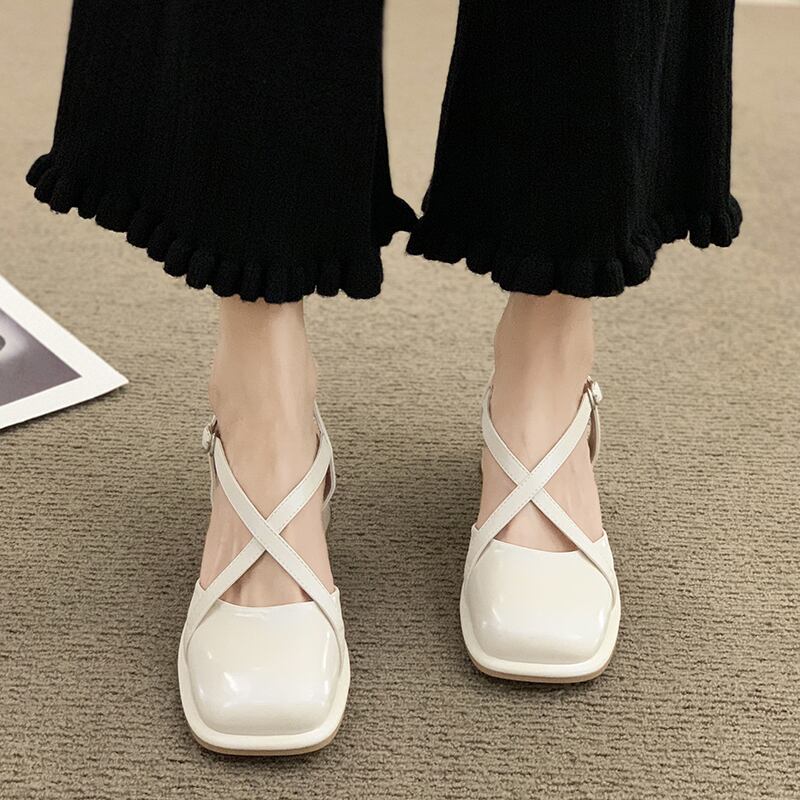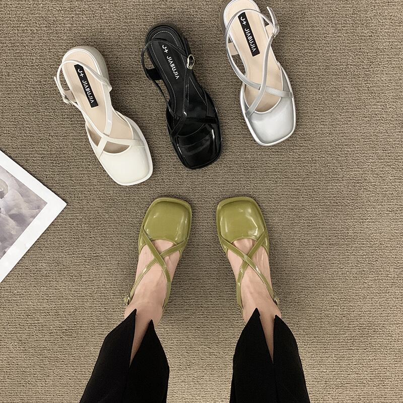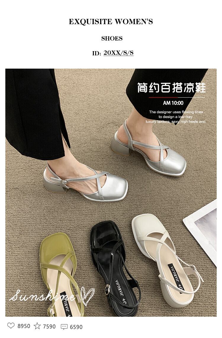 レディースサンダルサマーウェア2022新しいバオトウクロス厚手のヒール滑り止めファッションオールマッチフレンチレトロハイヒール 靴 シューズ 夏物 jxjxf82628822191