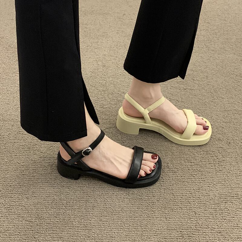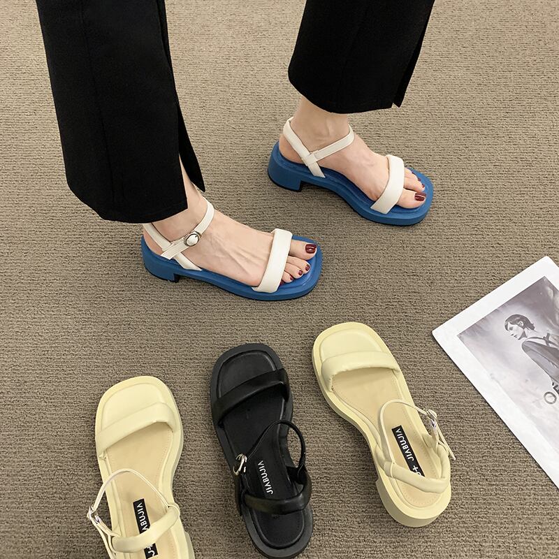 一言ベルトサンダルレディース2022夏の新しいファッション穏やかで用途の広い小さな厚いヒール滑り止めハイヒールトレンド 靴 シューズ サマー 夏物 ハーネス jxjxf50589464710