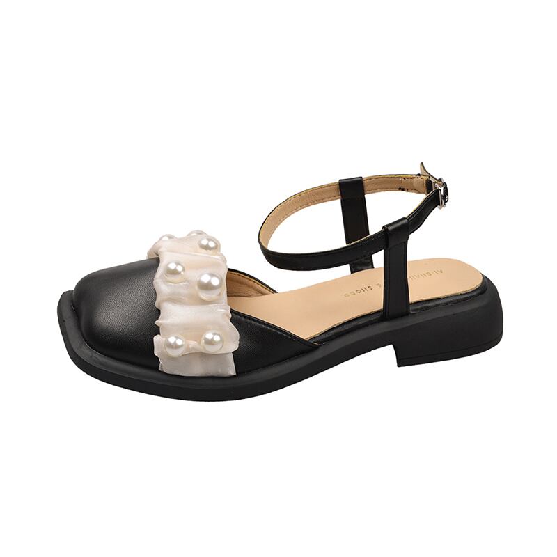 包頭サンダルレディース2022夏ニューネットレッドファッションレトロパールスクエアトゥフラット滑り止めスモールレザーシューズタイド 靴 サマー 夏物 真珠 スクウェア jxjxf26494990992