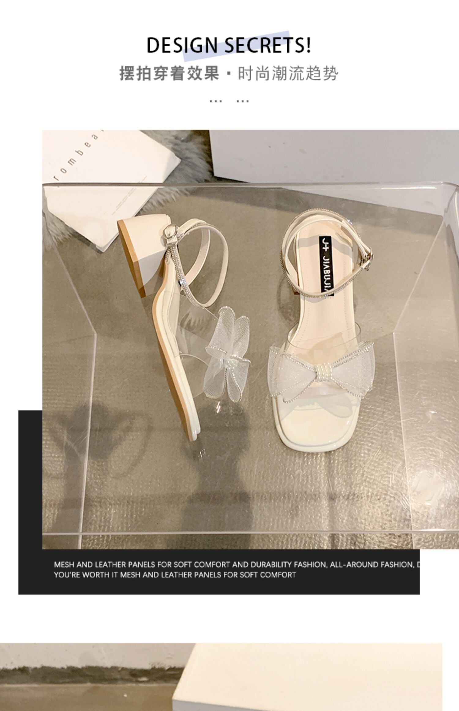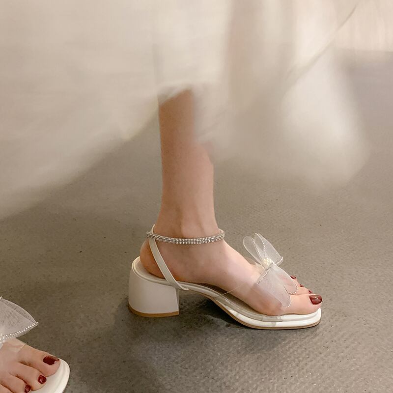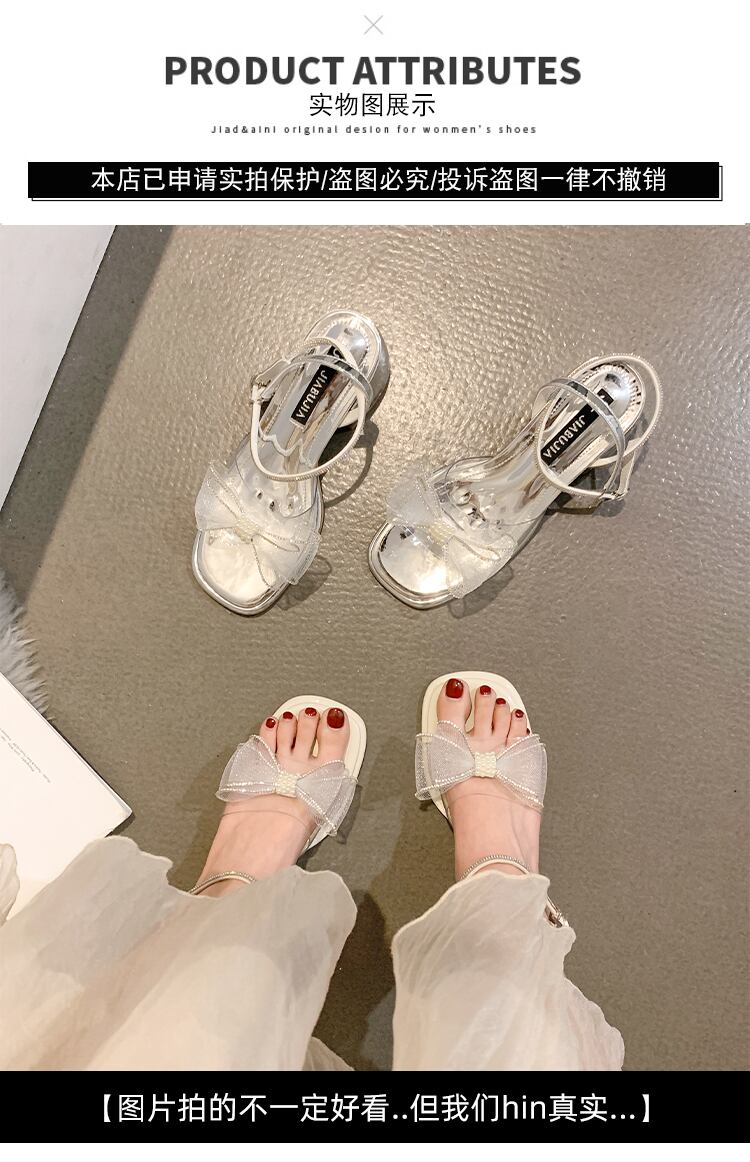 ネットレッドサンダルレディース2022夏の新しいファッションパールボウ厚いヒール滑り止めの妖精スタイルのハイヒール リボン 靴 シューズ サマー 夏物 真珠 jxjxf94444650546