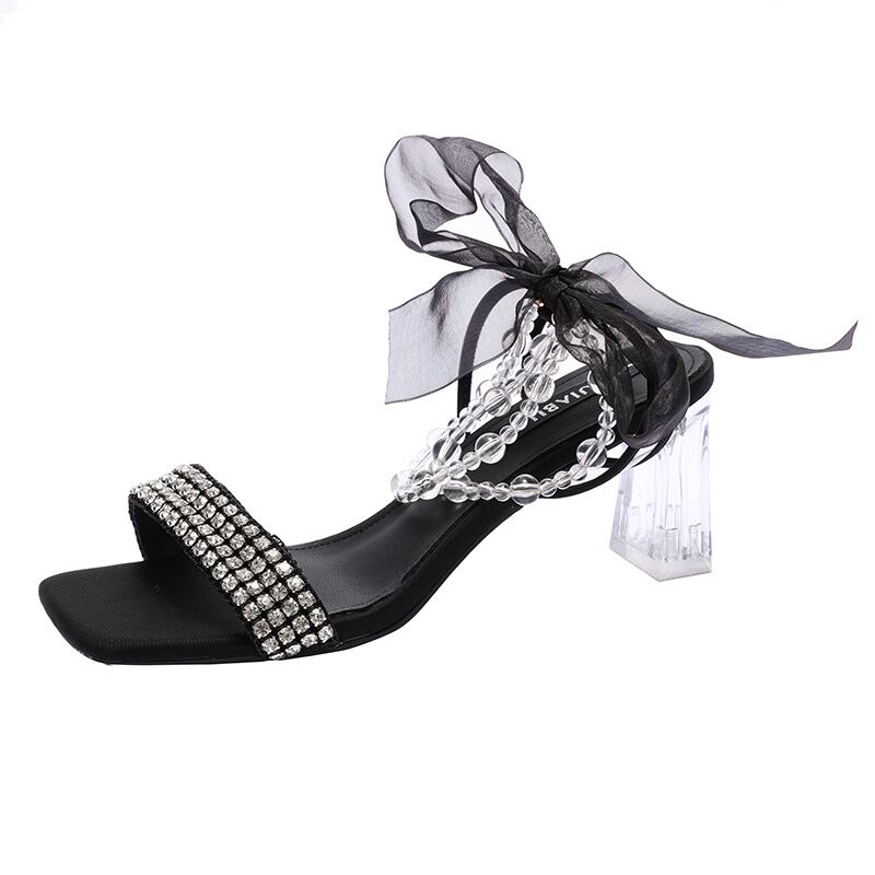 フェアリースタイルのサンダルレディース2022年夏の新しいパールラインストーンの厚いヒールのファッションオールマッチフランス語のハイヒール 靴 シューズ サマー 夏物 真珠 jxjxf68722848292
