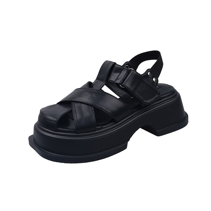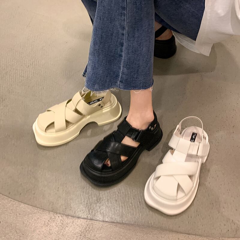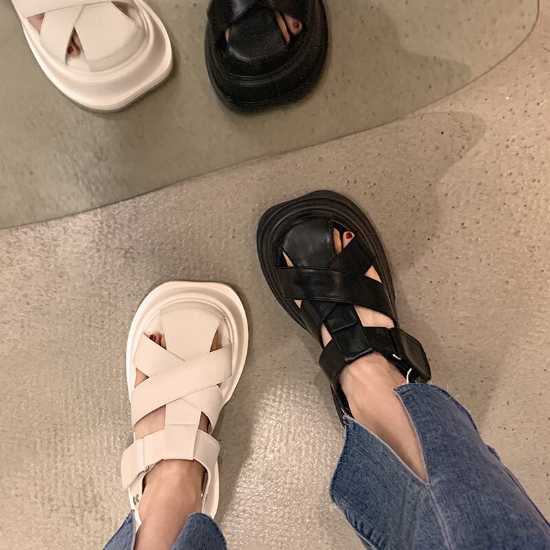 レトロ包頭サンダルレディース2022サマーベルクロシックヒールノンスリップオールマッチスモールローマンシューズ 靴 夏物 jxjxf72144110085