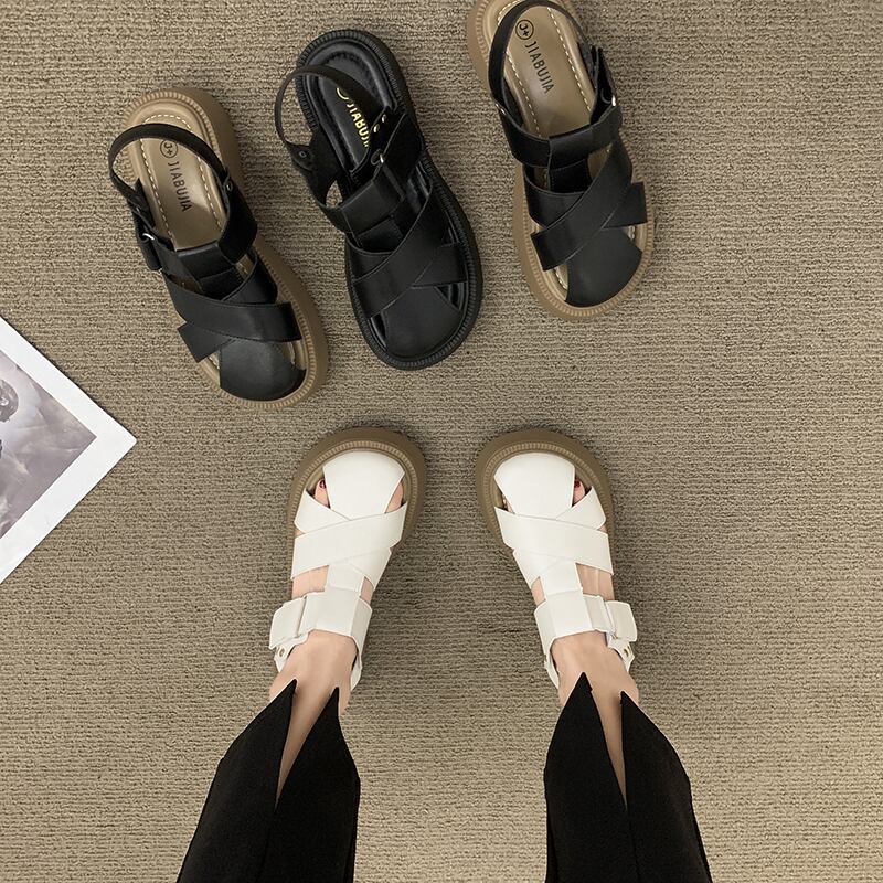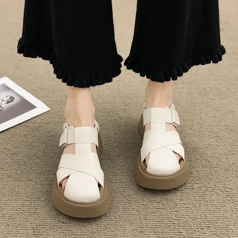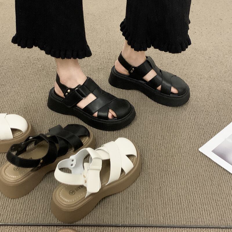 レディースサンダル2022年夏新しい包頭ベルクロ厚底滑り止めネットレッドファッションワイルドレトロピッグケージシューズ 靴 サマー 夏物 jxjxf79080341219