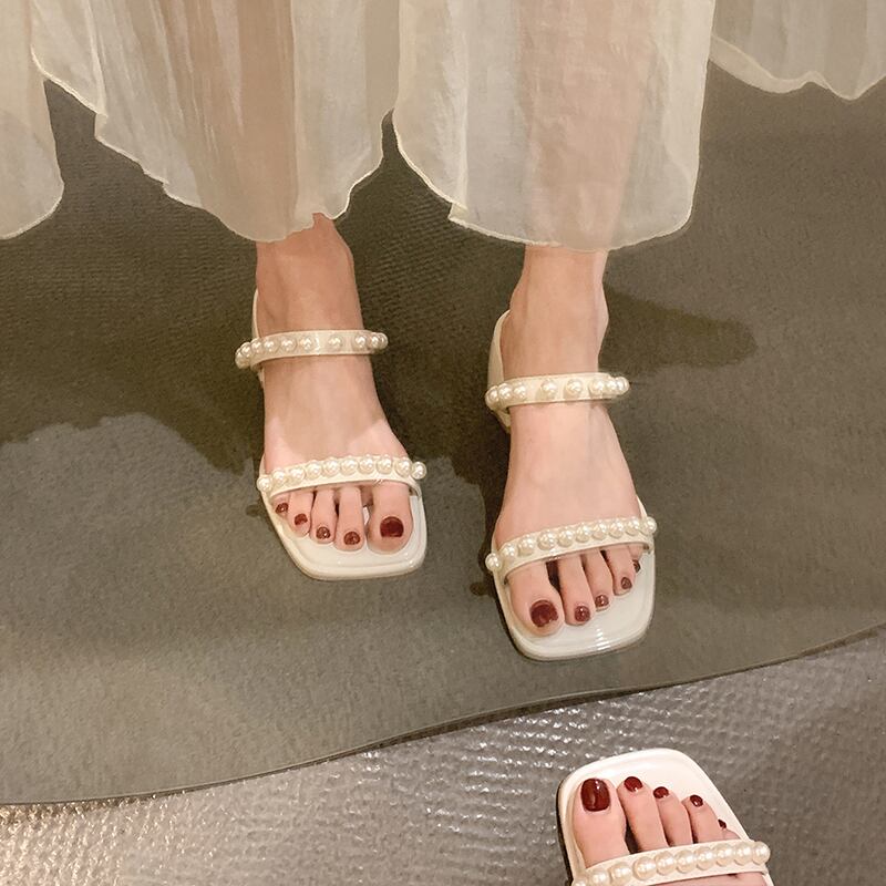 スリッパサマーウェア2022ニューファッションオールマッチパールワンワードシックヒールノンスリップフェアリーウィンドスリッパ ミュール 靴 シューズ 夏物 真珠 jxjxf26275250599