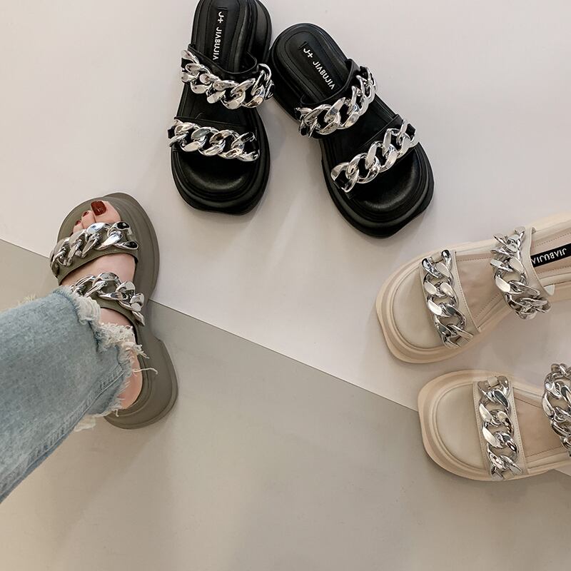ネット赤いスリッパ女性スーパー2022夏ニューファッションメタル厚底滑り止めカジュアルカジュアルワンワードサンダルとスリッパ レッド ミュール 靴 シューズ サマー 夏物 jxjxf18587100519