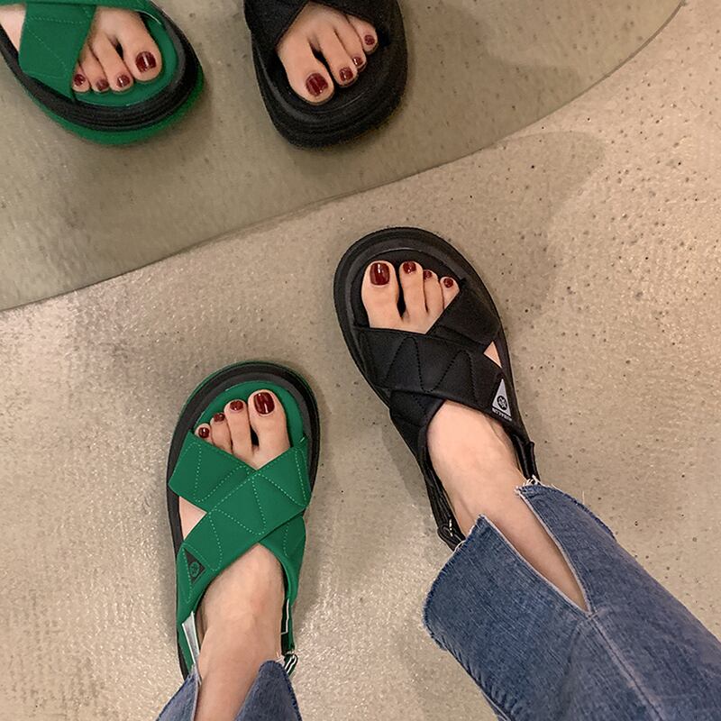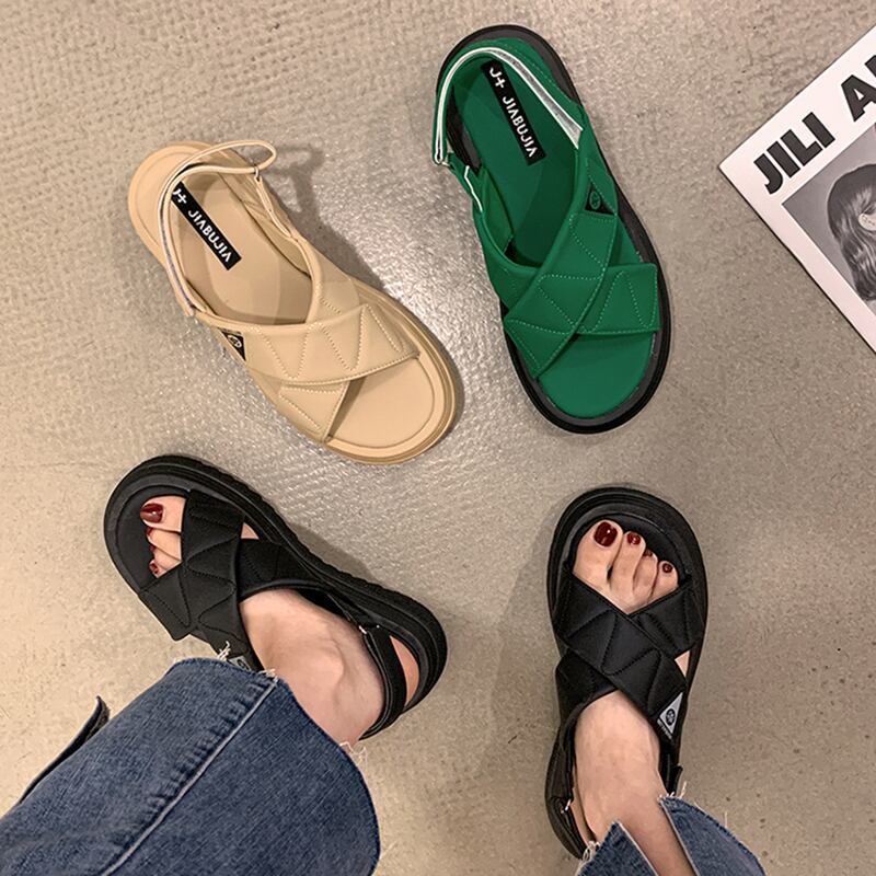 アウトドアレディースサンダル2022年夏の新しいベルクロクロス厚底滑り止めファッションオールマッチカジュアルビーチシューズ 靴 サマー 夏物 jxjxf27910713760