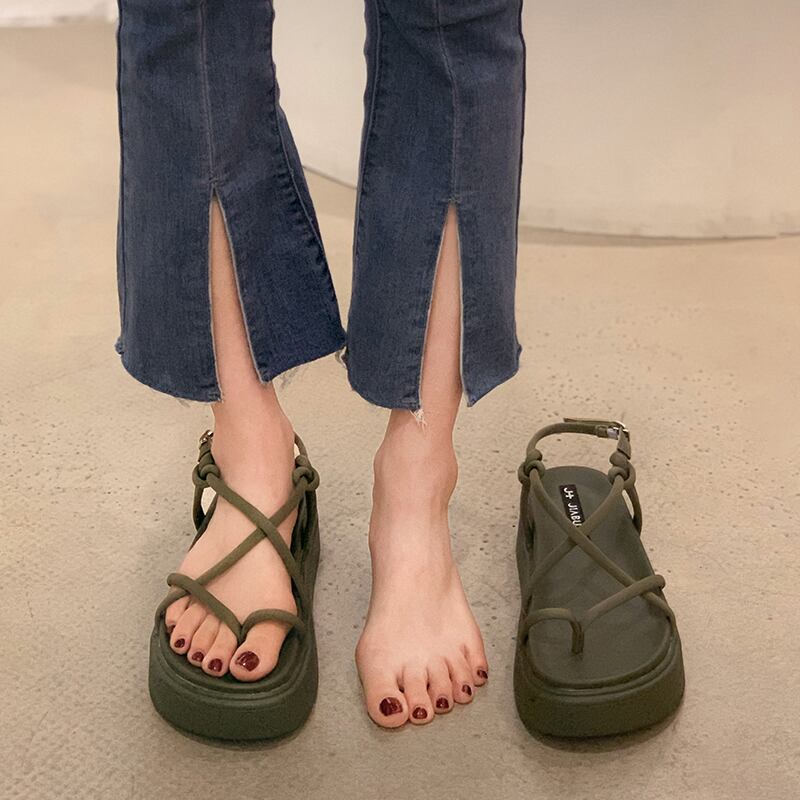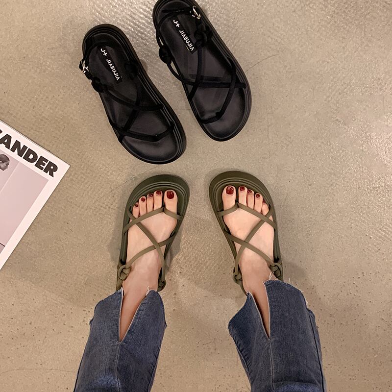 サンダルレディースサマーファッション2022新しいセットつま先クロス厚い底滑り止めオールマッチインタイドレトロビーチシューズ 靴 夏物 jxjxf71543104759