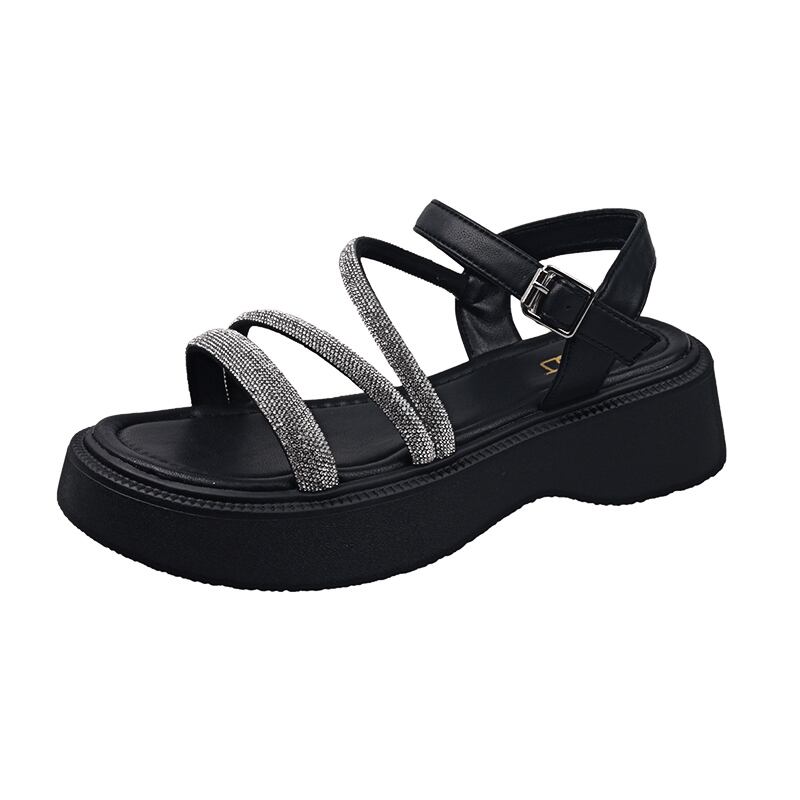 サンダルレディーススカート2022夏の新しいファッションオールマッチレトロラインストーンマフィン厚底滑り止めビーチシューズ 靴 サマー 夏物 jxjxf36934602533