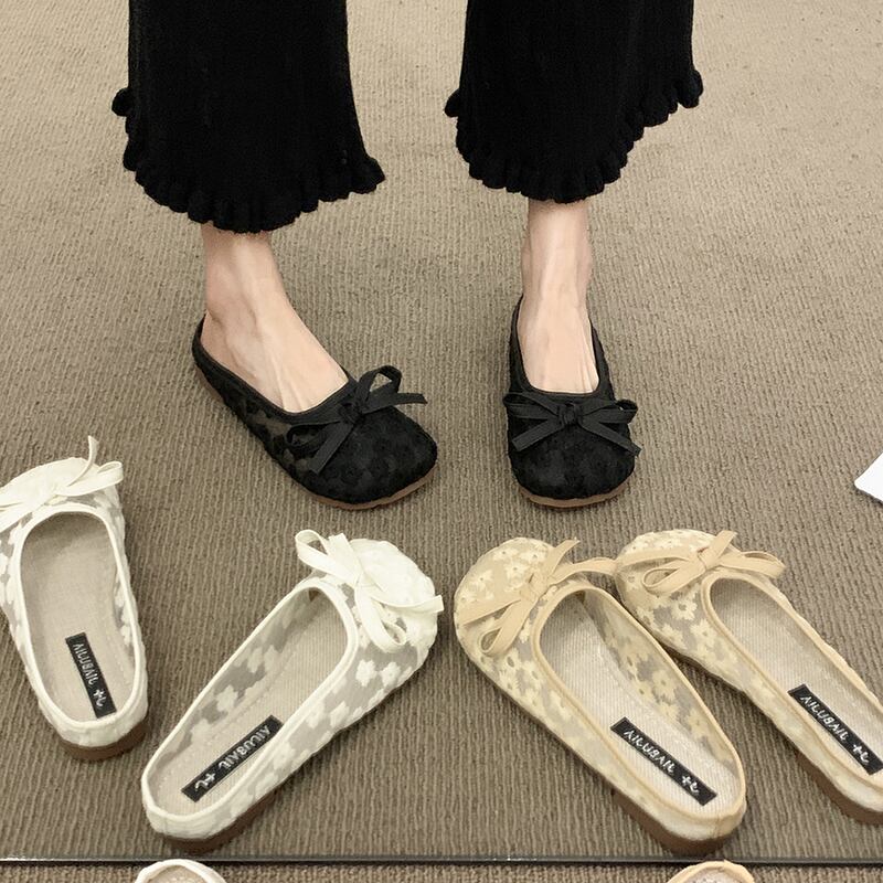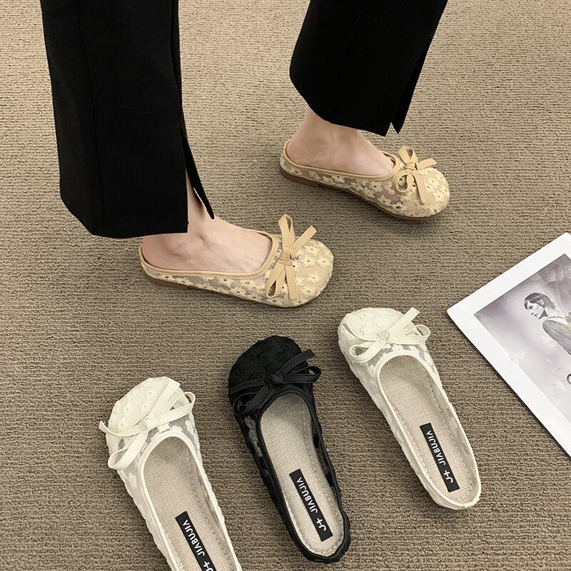 包頭スリッパレディース2022年夏の新しいアウターウェアファッションオールマッチ優しいレトロメッシュ平底滑り止めサンダル ミュール 靴 シューズ サマー 夏物 jxjxf8787058090