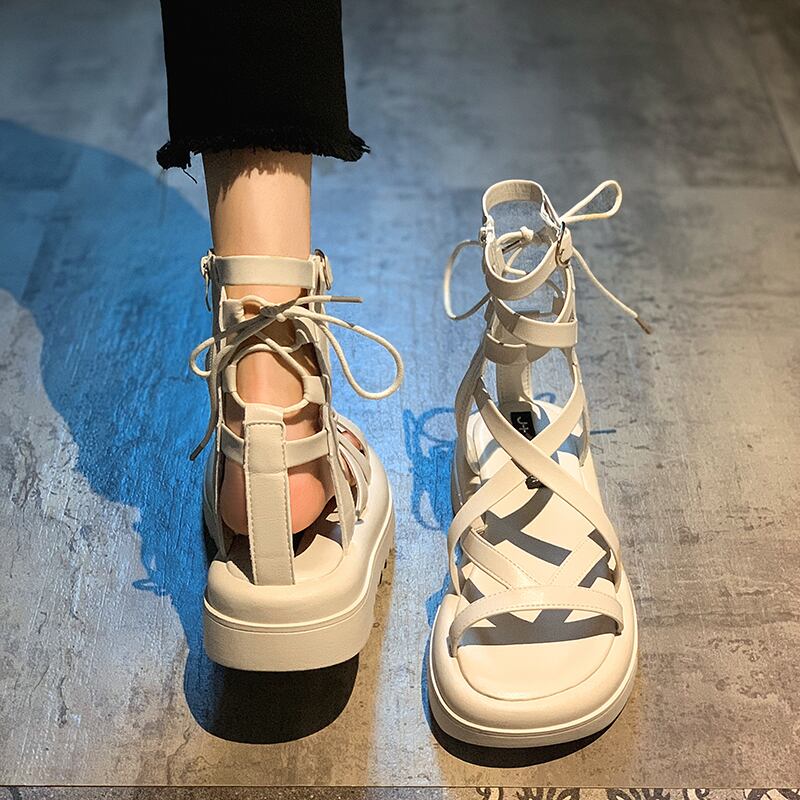 ネットレッドサンダルレディース2022夏新しいスーパーレトロワイルドスモールスポンジケーキ厚底滑り止めローマ靴 シューズ サマー 夏物 jxjxf16654478047