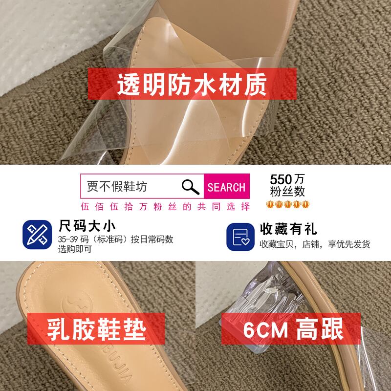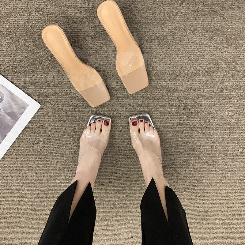 クリスタルの透明なサンダルとスリッパ女性の2022年夏の新しいクロスシックヒール滑り止めファッションオールマッチフェアリースタイルのビーチサンダル ミュール 靴 シューズ サマー 夏物 jxjxf70671922985