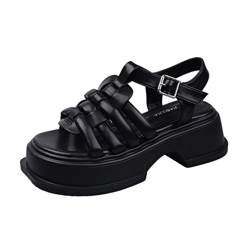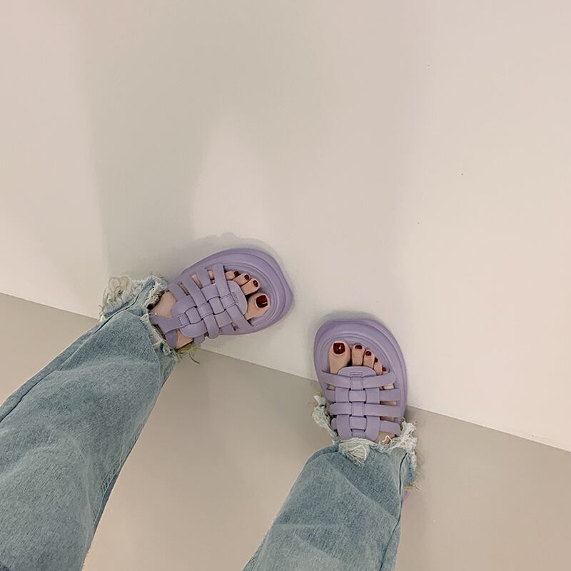 サンダルの女性の夏のファッション2022年の新しいレトロな野生の編まれたバックル小さな厚いヒール滑り止めのローマの靴 シューズ サマー 夏物 jxjxf11432062067