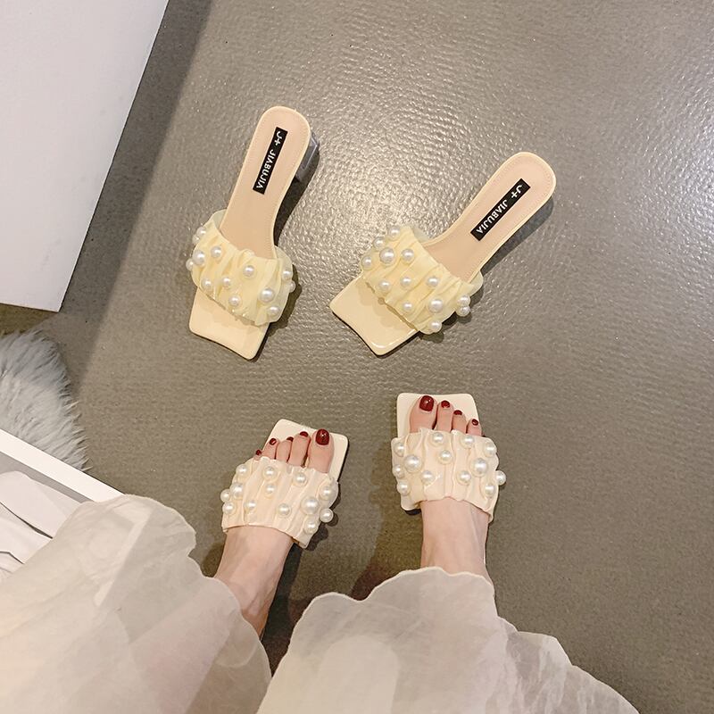 フェアリーウィンドサンダル2022年夏新しい女性のパールクリスタルと滑り止めのファッションオールマッチレトロワンワードスリッパ ミュール 靴 シューズ サマー 夏物 真珠 jxjxf86771453234