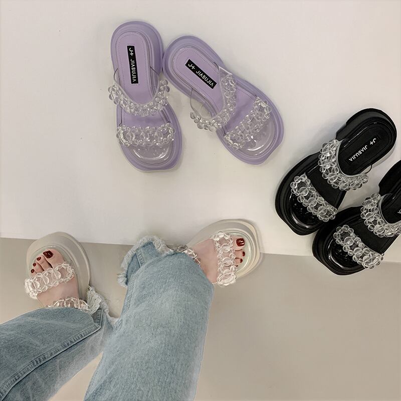 スリッパ女子2022年夏新ネットレッドスーパーオールマッチクリスタルフラワー厚底ノンスリップワードドラッグタイド ミュール 靴 シューズ サマー 夏物 フラワーデザイン jxjxf51238429028