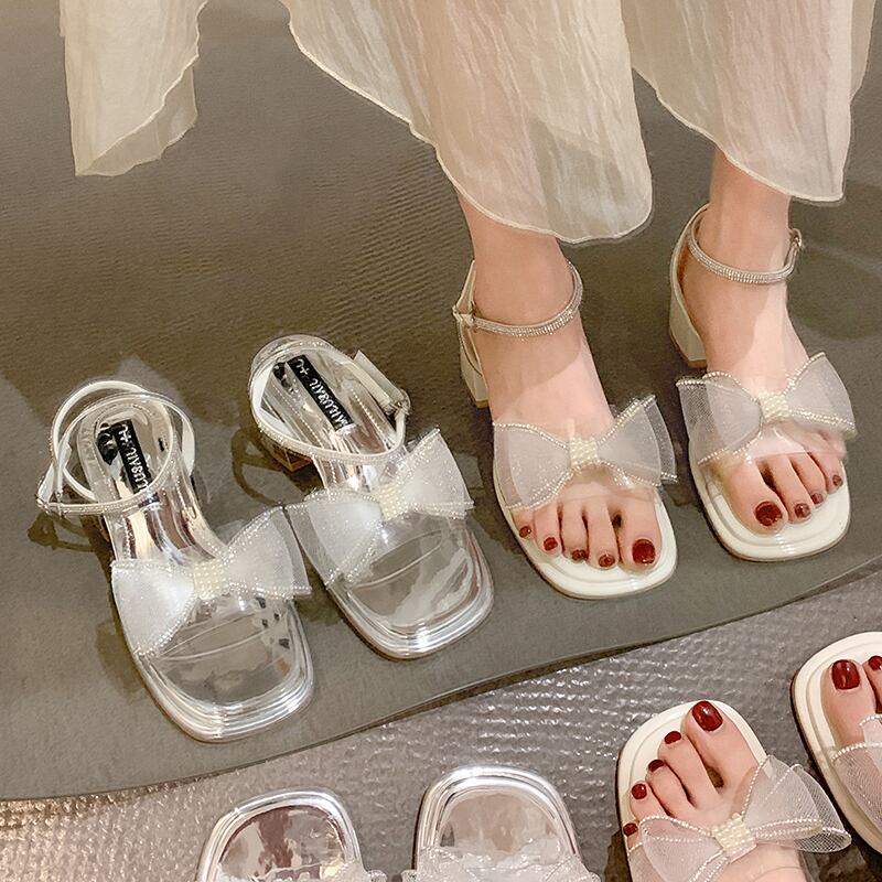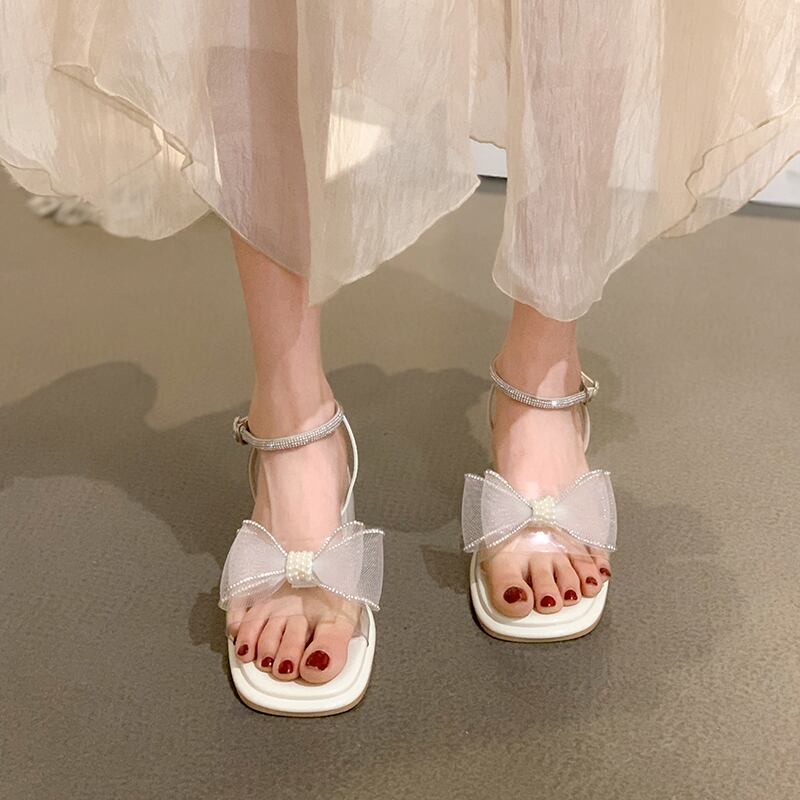 サンダル2022レディースニューサマーネットセレブフェアリースタイルファッションパールボウシックヒールノンスリップハイヒールタイド リボン 靴 シューズ 夏物 真珠 jxjxf73293315656