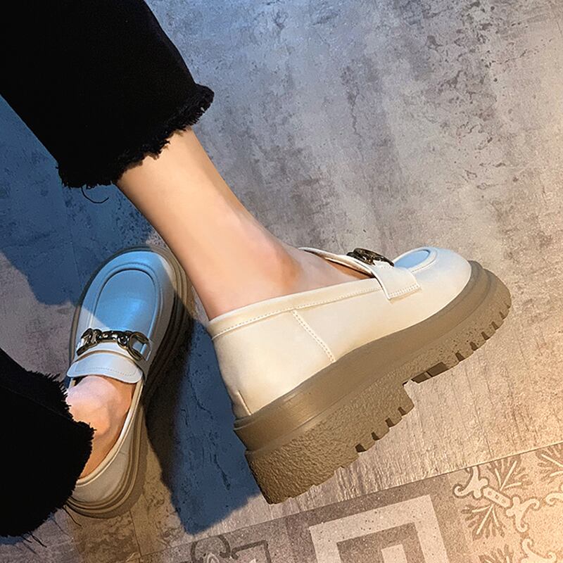 eseローファー女性の2022年夏の新しい金属の厚いかかと滑り止めネット赤いファッションオールマッチ小さな革の靴instide シューズ レッド ヒール サマー 夏物 レザー jxjxf21073510708