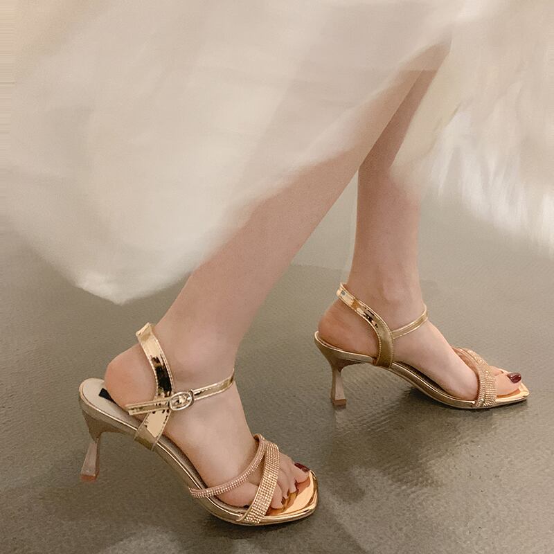 レディースサンダル2022年夏新しいネットレッドスーパーオールマッチラインストーンバックルスティレットフェアリースタイルハイヒール 靴 シューズ サマー 夏物 jxjxf86942560229