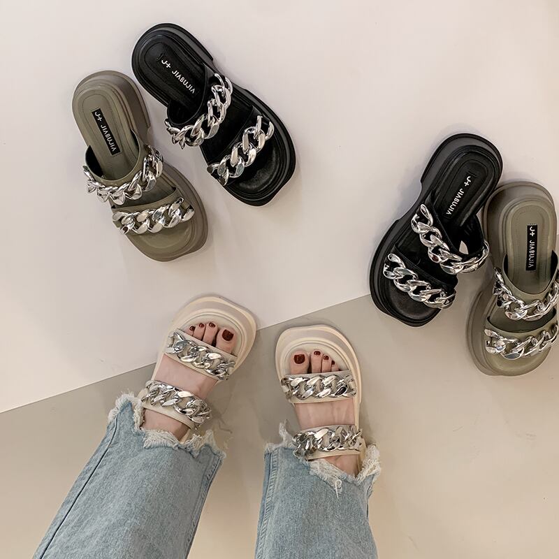 アウターウェアスリッパレディース2022年夏の新しいファッションオールマッチレトロメタルチェーン厚底滑り止めサンダルとスリッパタイド ミュール 靴 シューズ サマー 夏物 jxjxf43922528720