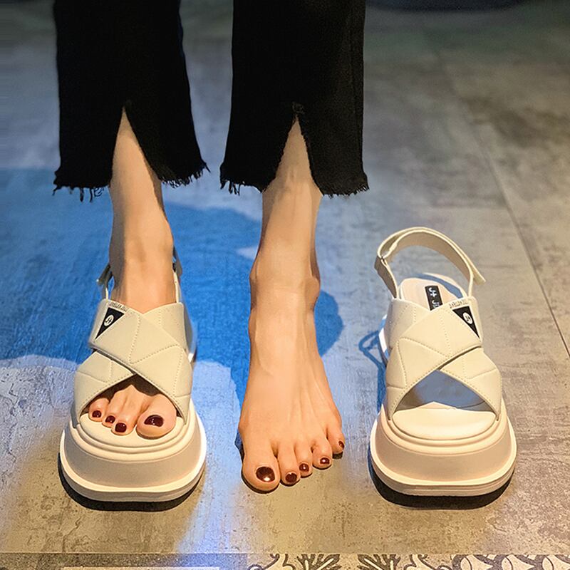 サンダル女子夏ベルクロ2022新しいクロス厚手のヒール滑り止めスーパーファッションオールマッチカジュアルビーチシューズ 靴 サマー 夏物 jxjxf44018057164