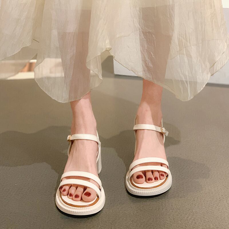 サンダルレディースサマーオールマッチ2022ニューファッションレトロスモールシックヒールノンスリップハイヒールトレンディ 靴 シューズ 夏物 jxjxf11659082776