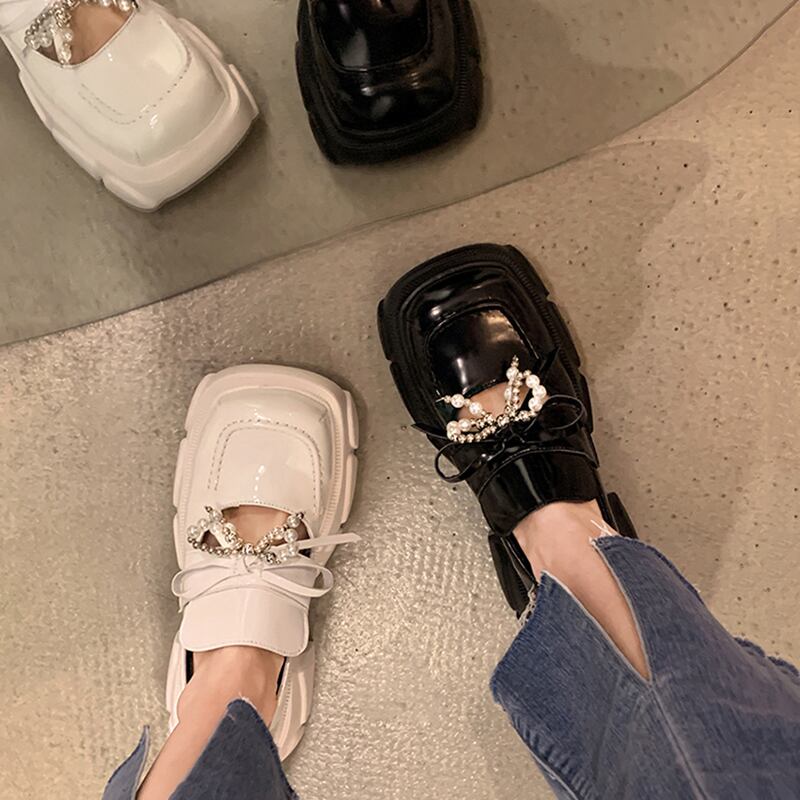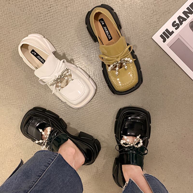 靴2022新しいトレンドオールマッチサマーパールボウシックヒールノンスリップファッションレトロスモールレザーシューズ リボン 夏物 真珠 jxjxf21665390238