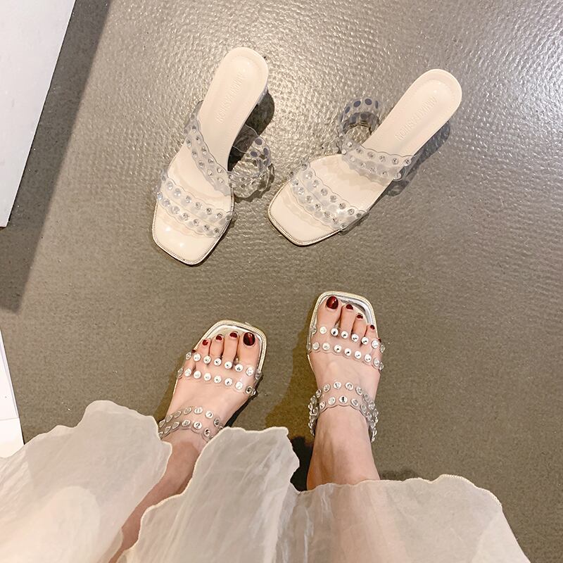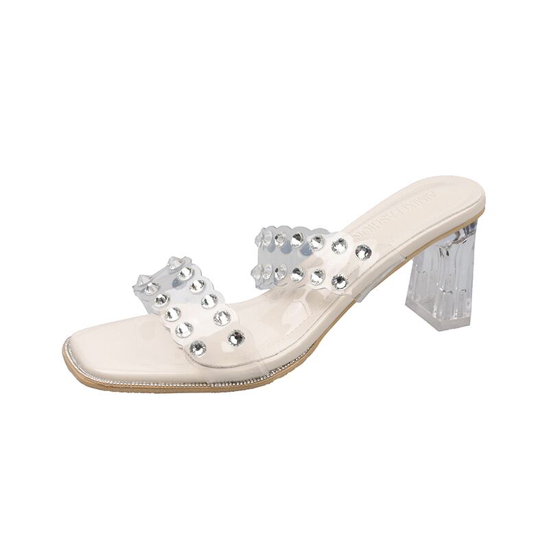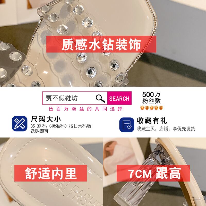 夏のスリッパ女性は2022年の新しいファッションオールマッチラインストーン透明クリスタルハイヒールワンワードサンダルとスリッパを着用します 靴 シューズ ミュール サマー 夏物 jxjxf80355616748
