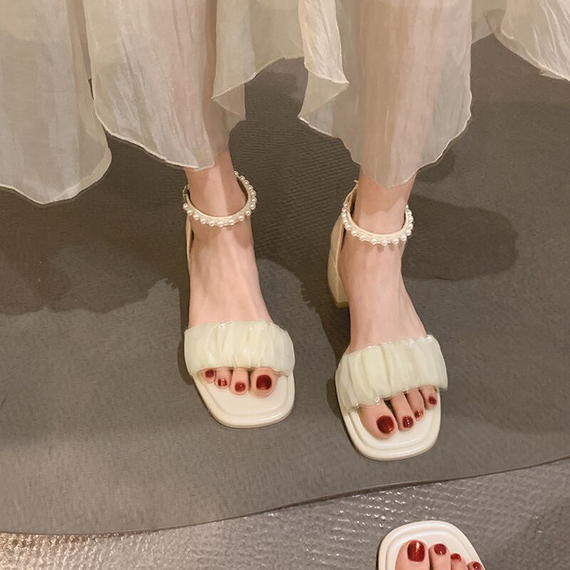 一言ベルトサンダルレディース2022夏ニューパールバックルシックヒールノンスリップファッションオールマッチフェアリースタイルハイヒール 靴 シューズ サマー 夏物 ハーネス 真珠 jxjxf40670775628