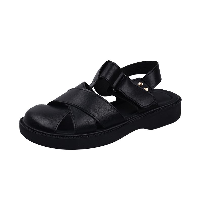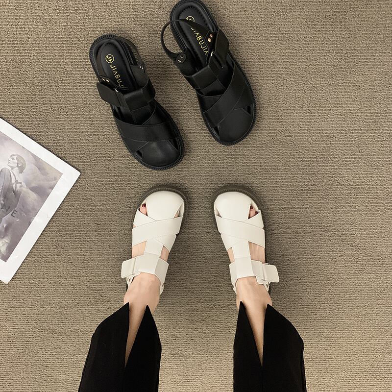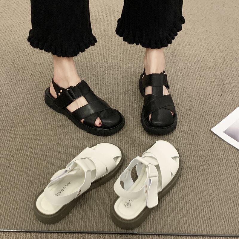 レトロ包頭サンダルレディース2022サマーベルクロフラット滑り止めオールマッチビーチケージシューズ 靴 夏物 jxjxf53989327639