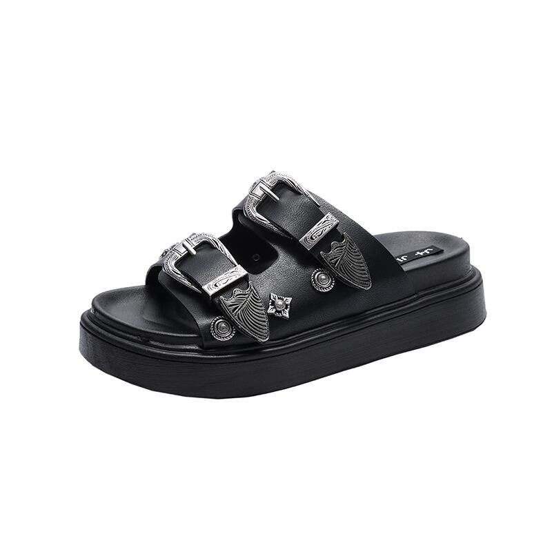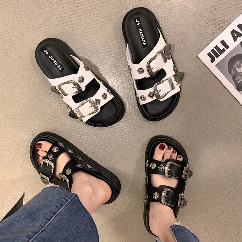 夏のスリッパはファッションネットレッド2022女性の新しい金属ベルトバックル厚い底滑り止めレトロフリップフロップを着用します ミュール 靴 シューズ サマー 夏物 ハーネス jxjxf69259593194