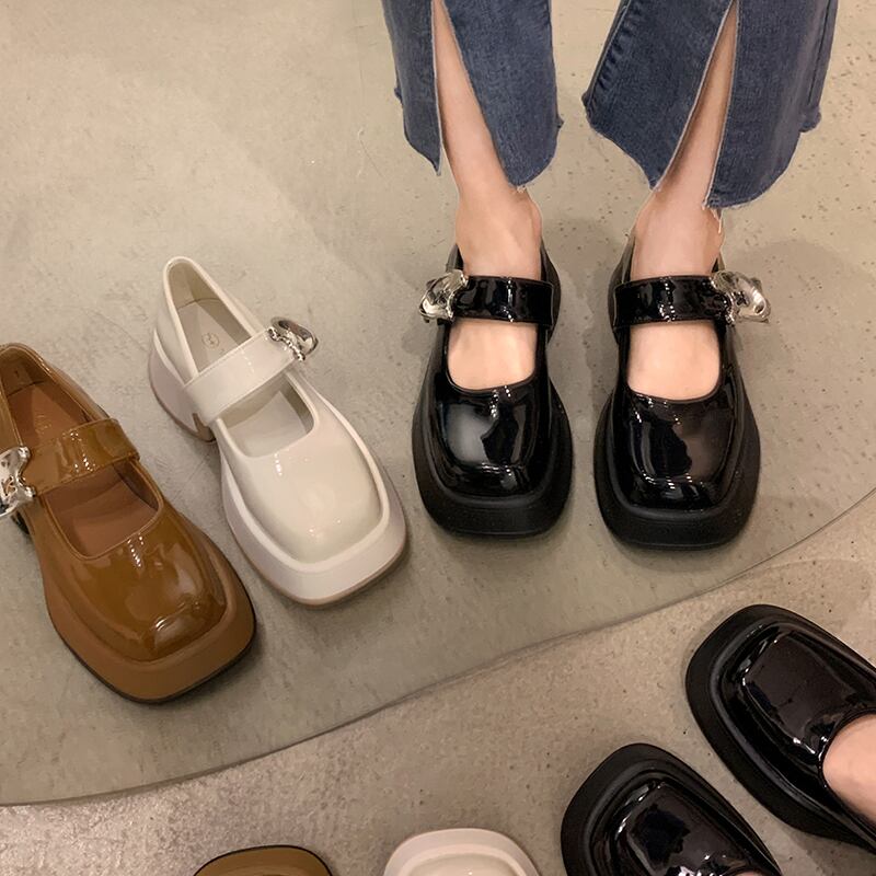 小さな革の靴女性の2022年夏の新しい正方形の頭の厚いかかと滑り止めネット赤いファッションオールマッチ穏やかなレトロなメリージェーンの靴 シューズ レッド サマー 夏物 レザー スクウェア jxjxf68334199069