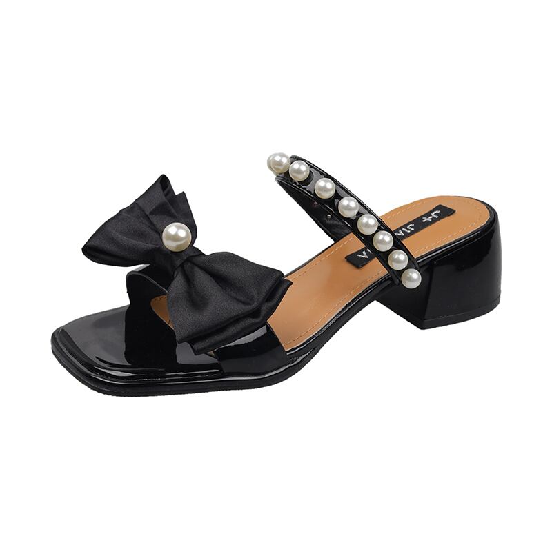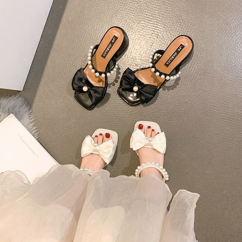 スリッパ女性の新しい2022年夏のファッションレトロパールボウ厚いヒール滑り止めの妖精風一言サンダルとスリッパ リボン ミュール 靴 シューズ サマー 夏物 真珠 jxjxf38100348817