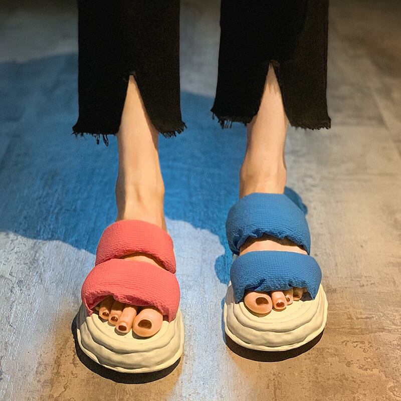 スリッパ女性の潮汐2022年夏の新しいアウターウェアオールマッチスポンジケーキ厚い底滑り止め一言サンダルとスリッパを溶かす ミュール 靴 シューズ サマー 夏物 jxjxf53776209068