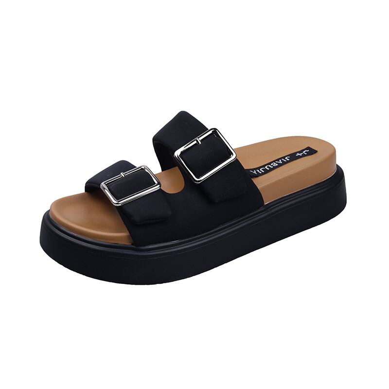 女性用スリッパは2022年夏に着用新しいファッションオールマッチレトロベルトバックルスポンジケーキ厚底滑り止めフリップフロップ ミュール 靴 シューズ サマー 夏物 ハーネス jxjxf54323990502