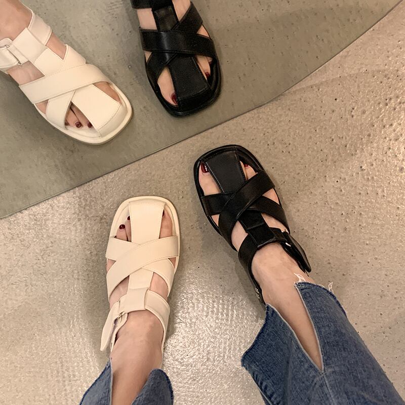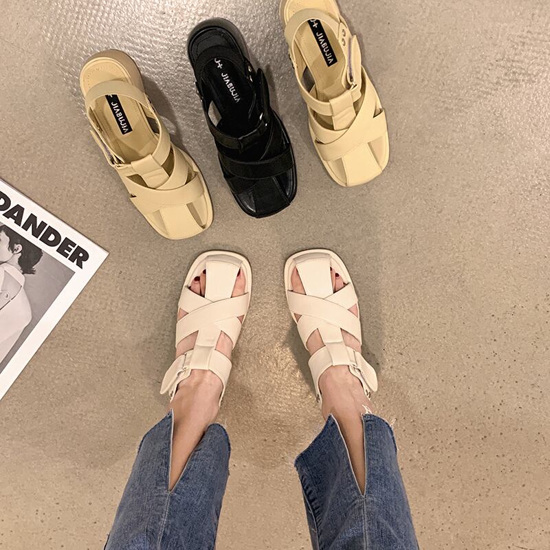 包頭サンダルレディース2022夏の新しいベルクロ厚いヒール滑り止めファッションオールマッチレトロローマのハイヒール 靴 シューズ サマー 夏物 jxjxf20814662486