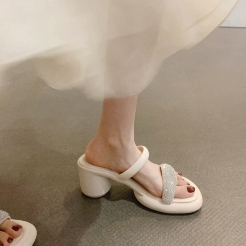 女性のファッションスリッパは2022年夏の新しいラインストーンの厚いヒールネット赤いファッションの妖精スタイルのフランスのビーチサンダルを着用します レッド ミュール 靴 シューズ サマー 夏物 jxjxf65195329838