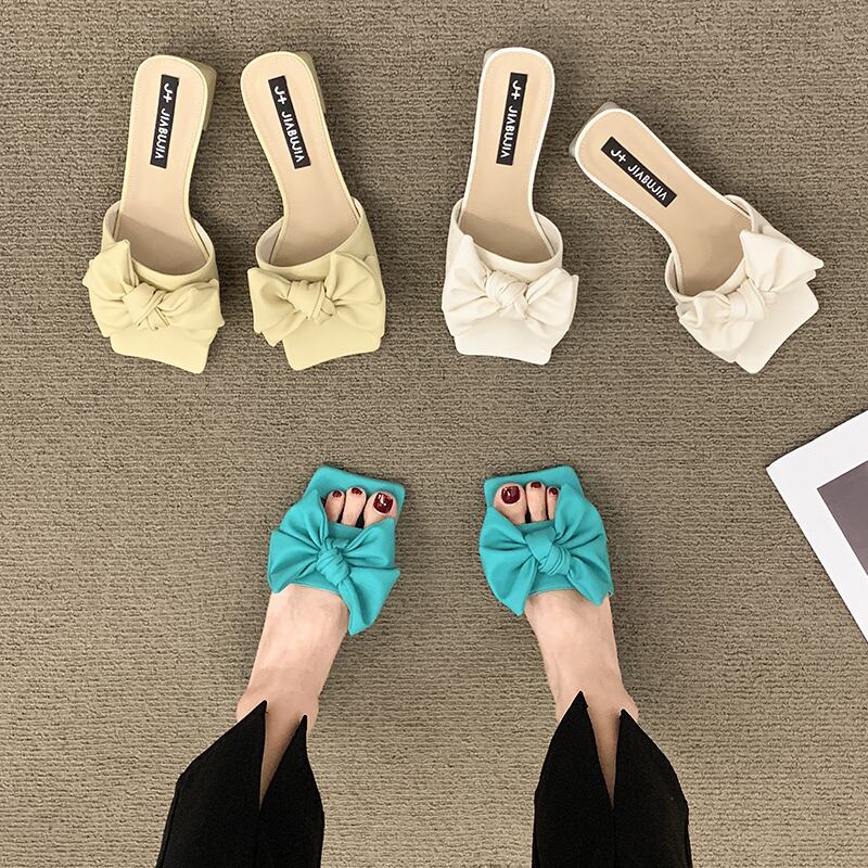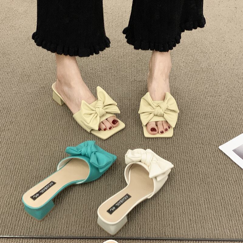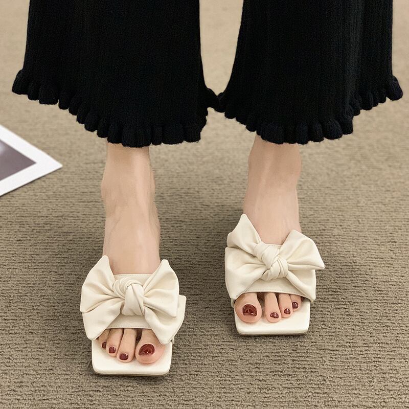 女性の2022年夏の新しいスタイルの弓の厚いヒールの滑り止めのファッションオールマッチフレンチレトロスリッパ リボン ミュール 靴 シューズ サマー 夏物 jxjxf18631026751