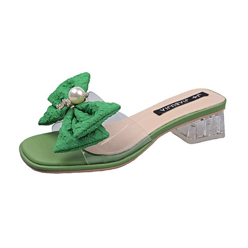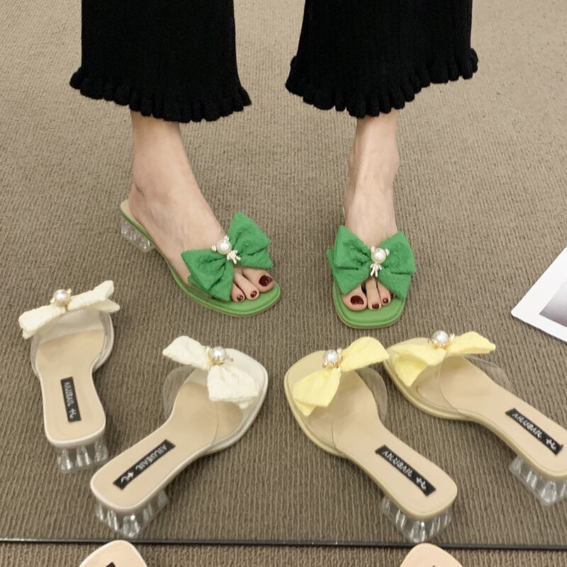 アウターウェアスリッパ女性の2022年夏の新しいファッションレトロラインストーンボウクリスタル厚いヒール一言サンダルとスリッパの潮 リボン ミュール 靴 シューズ サマー 夏物 jxjxf3182344832