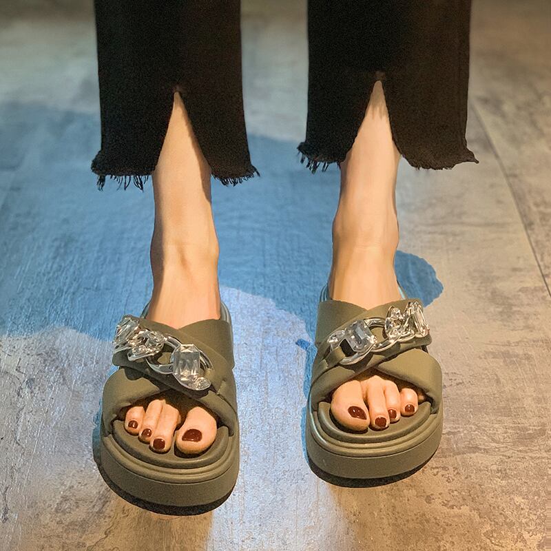 スリッパ2022新しいファッション夏レトロラインストーンメタルアウターウェア厚い底滑り止めサンダルとスリッパinstide ミュール 靴 シューズ サマー 夏物 jxjxf14027067309